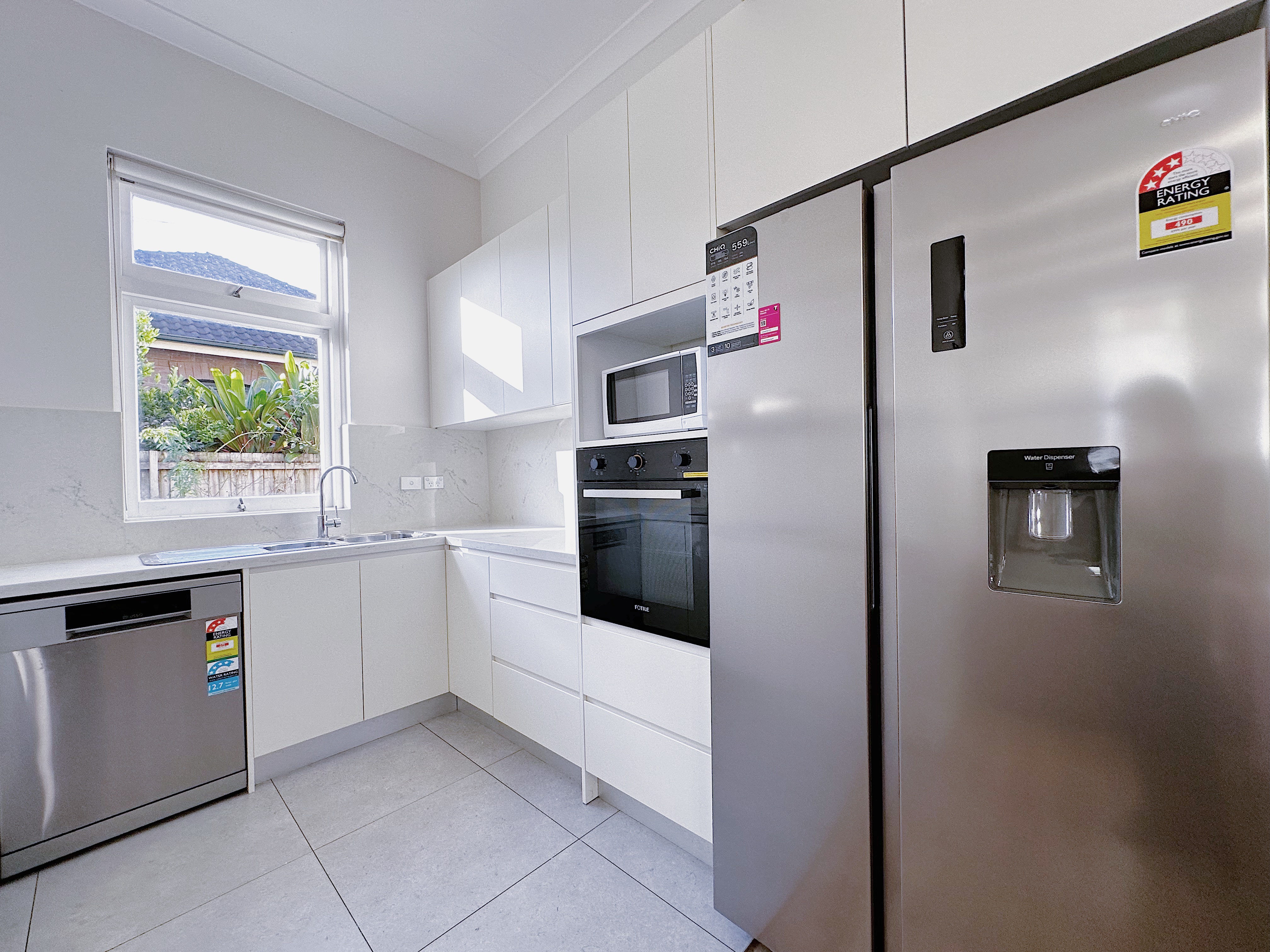 • Modern renovated kitchen equipped with electric cooktop, dishwasher, and 559L Side by Side fridge with water dispenser