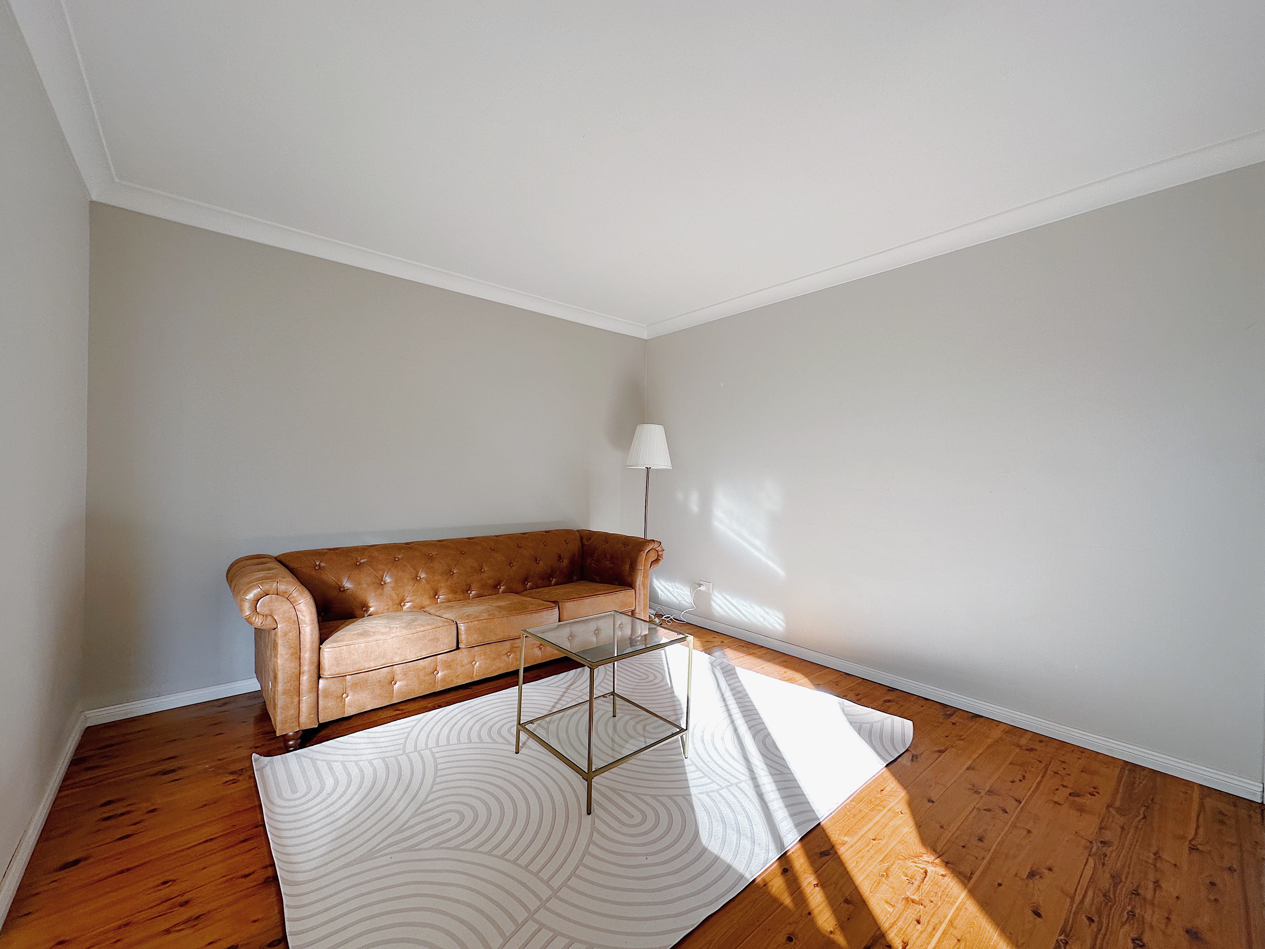 • Bright and inviting living room with a glamorous Chesterfield sofa and a dreamy armchair