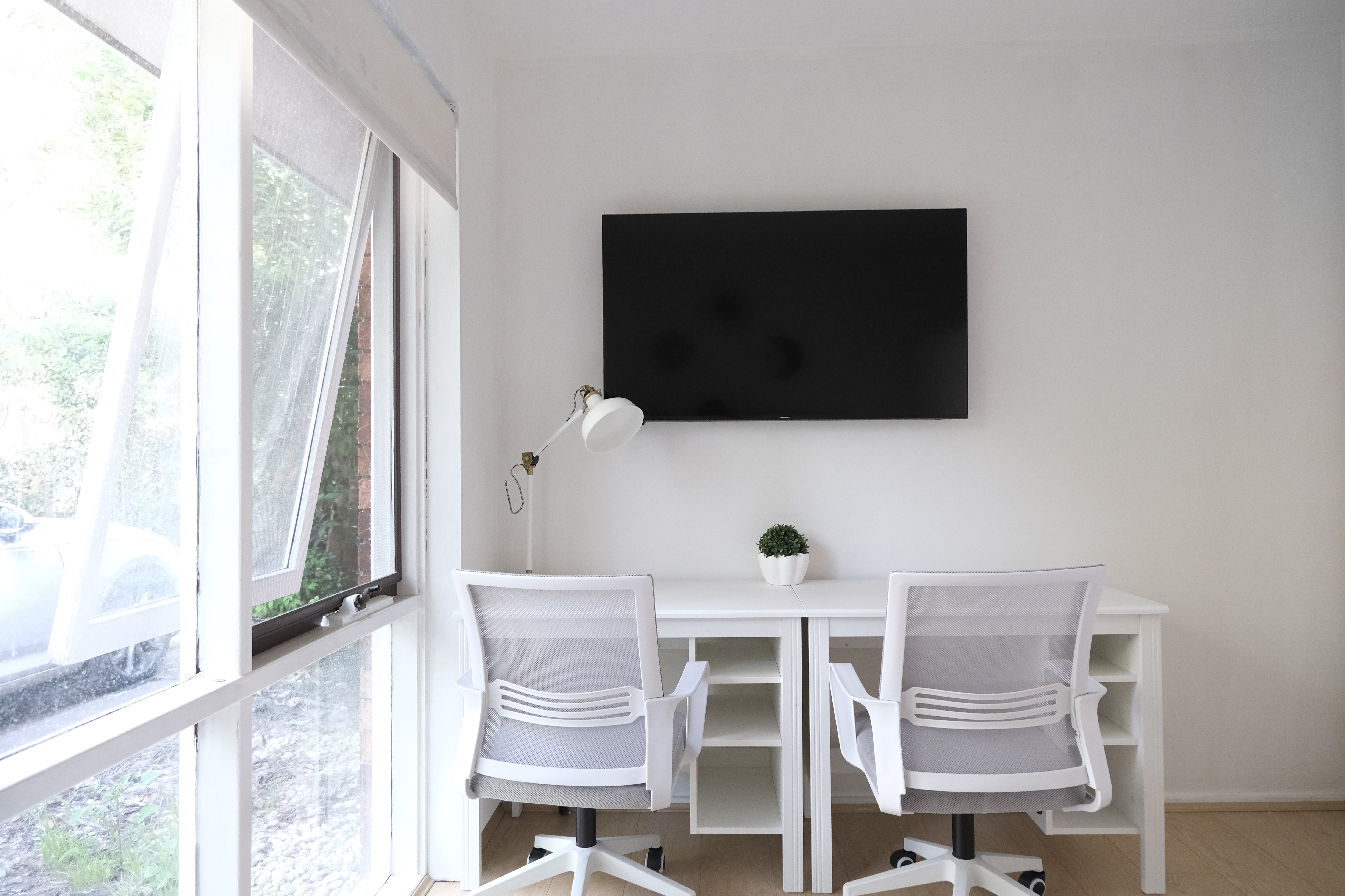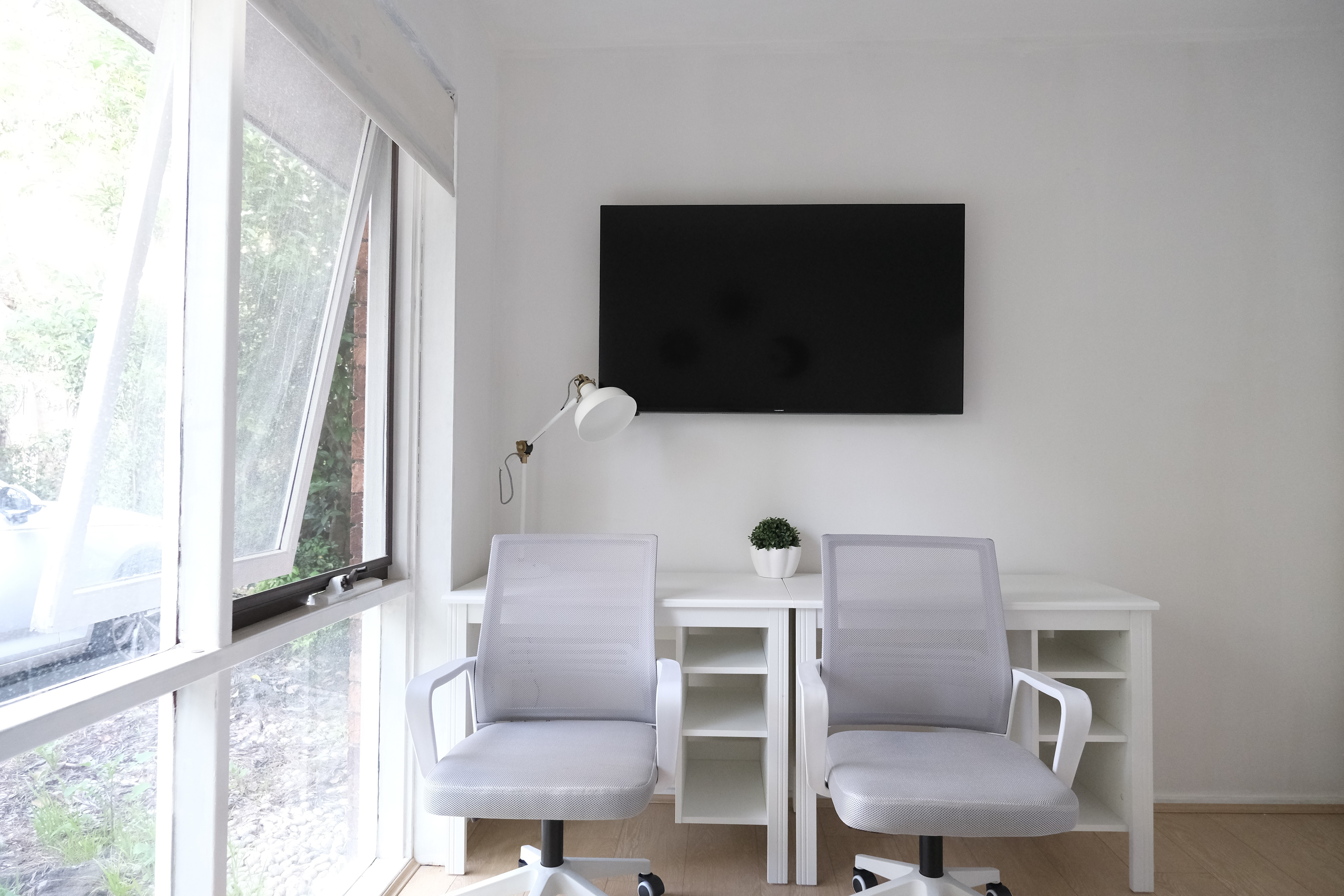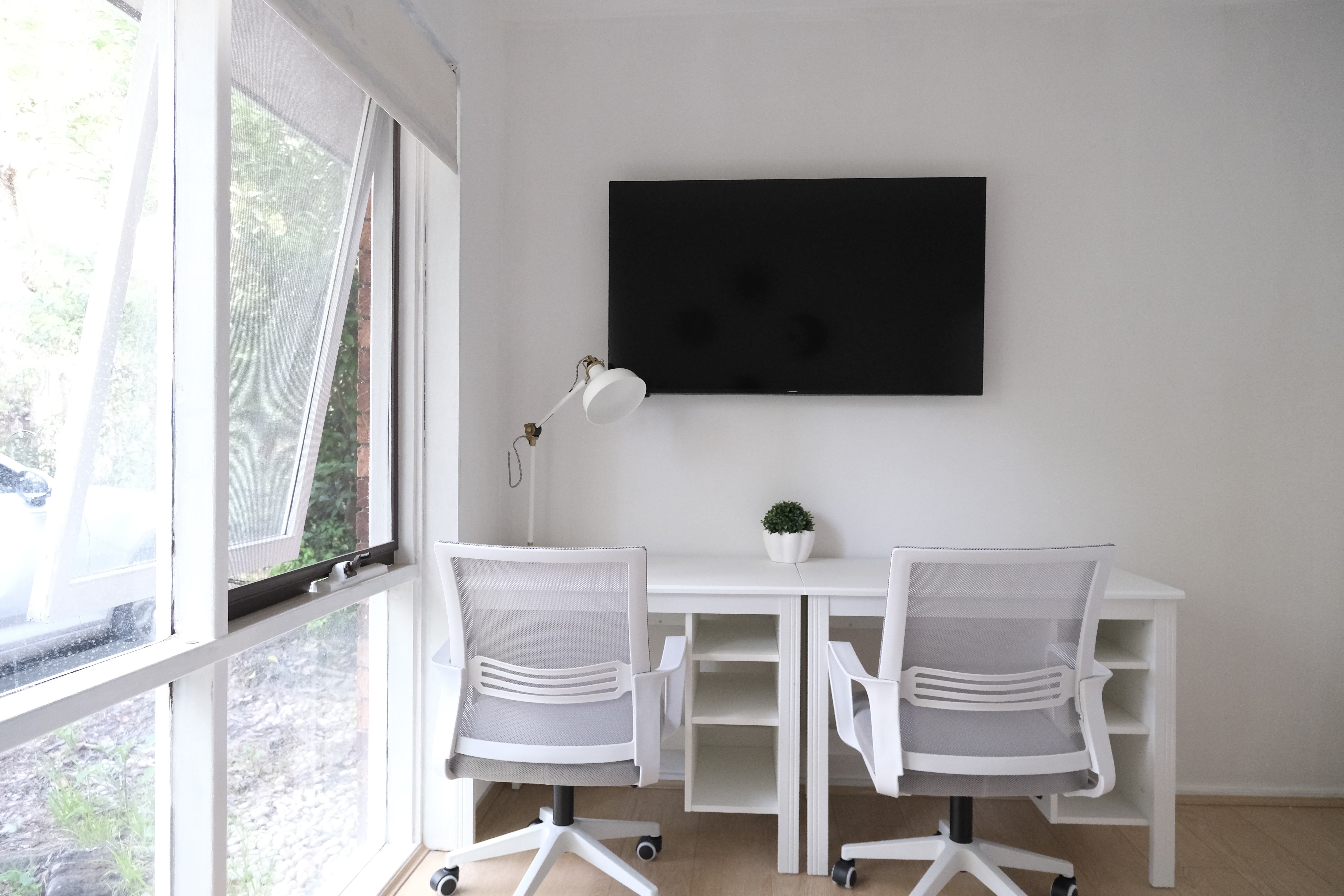 • Two desks with drawers and swivel chairs