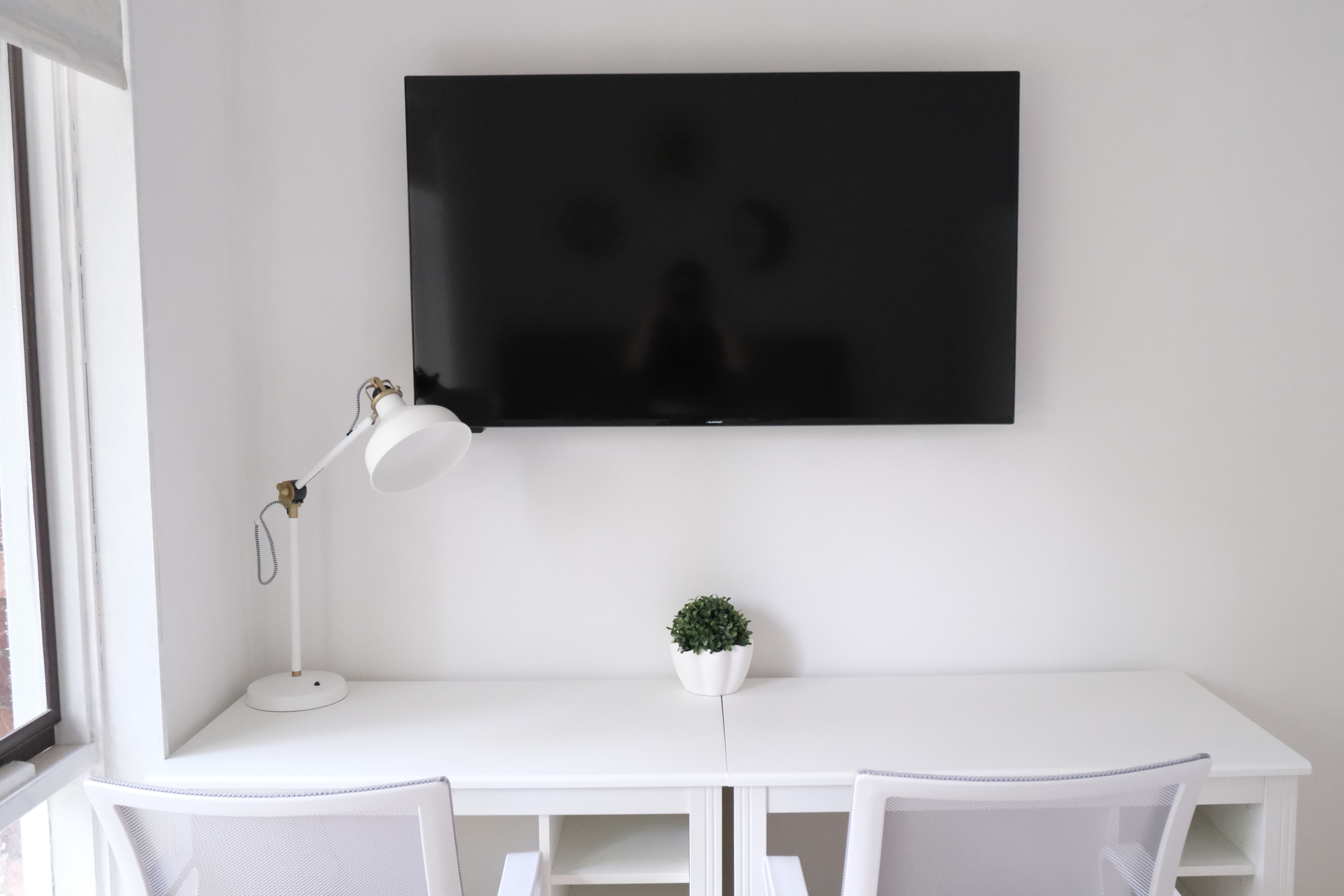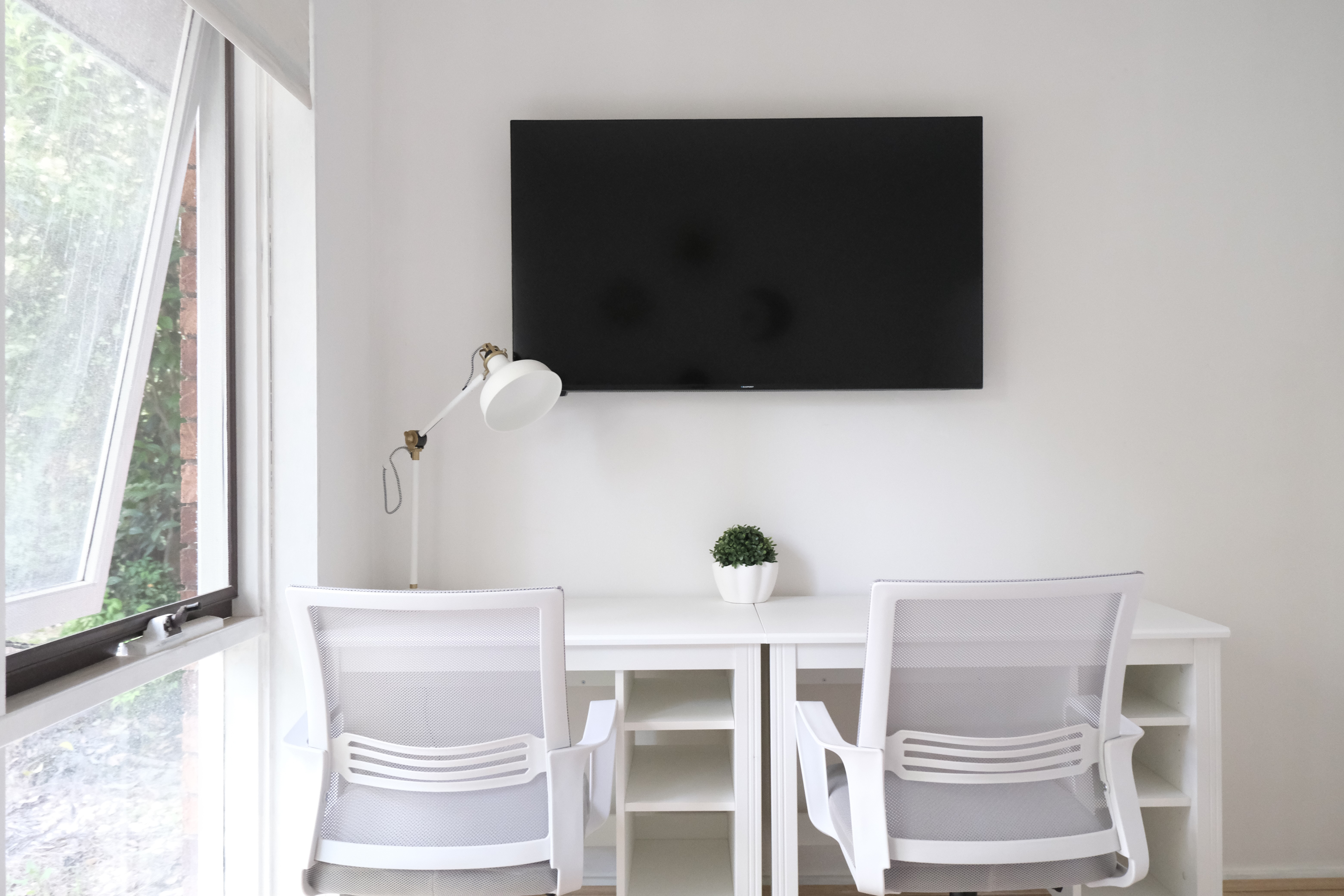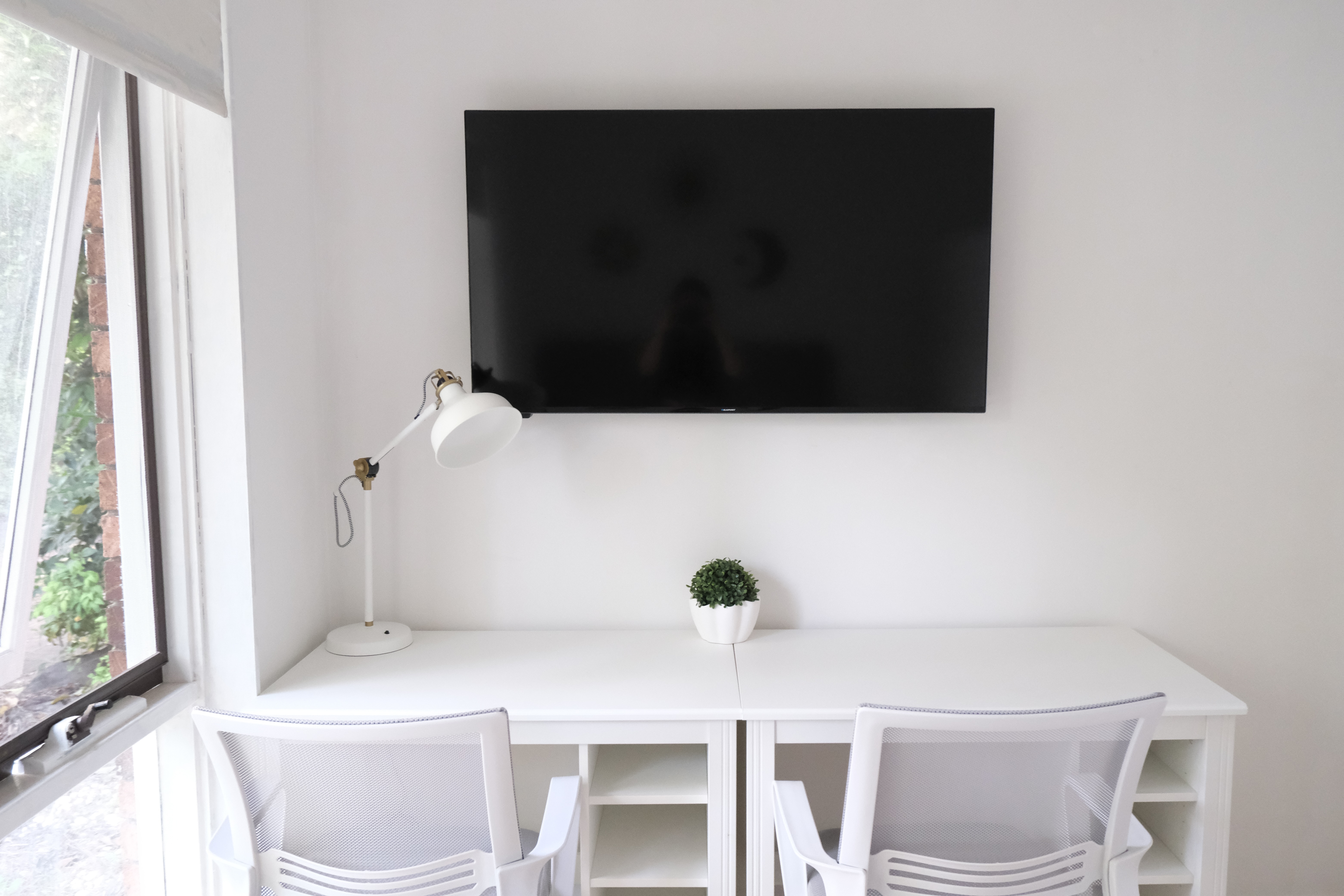 • Two desks with drawers and swivel chairs