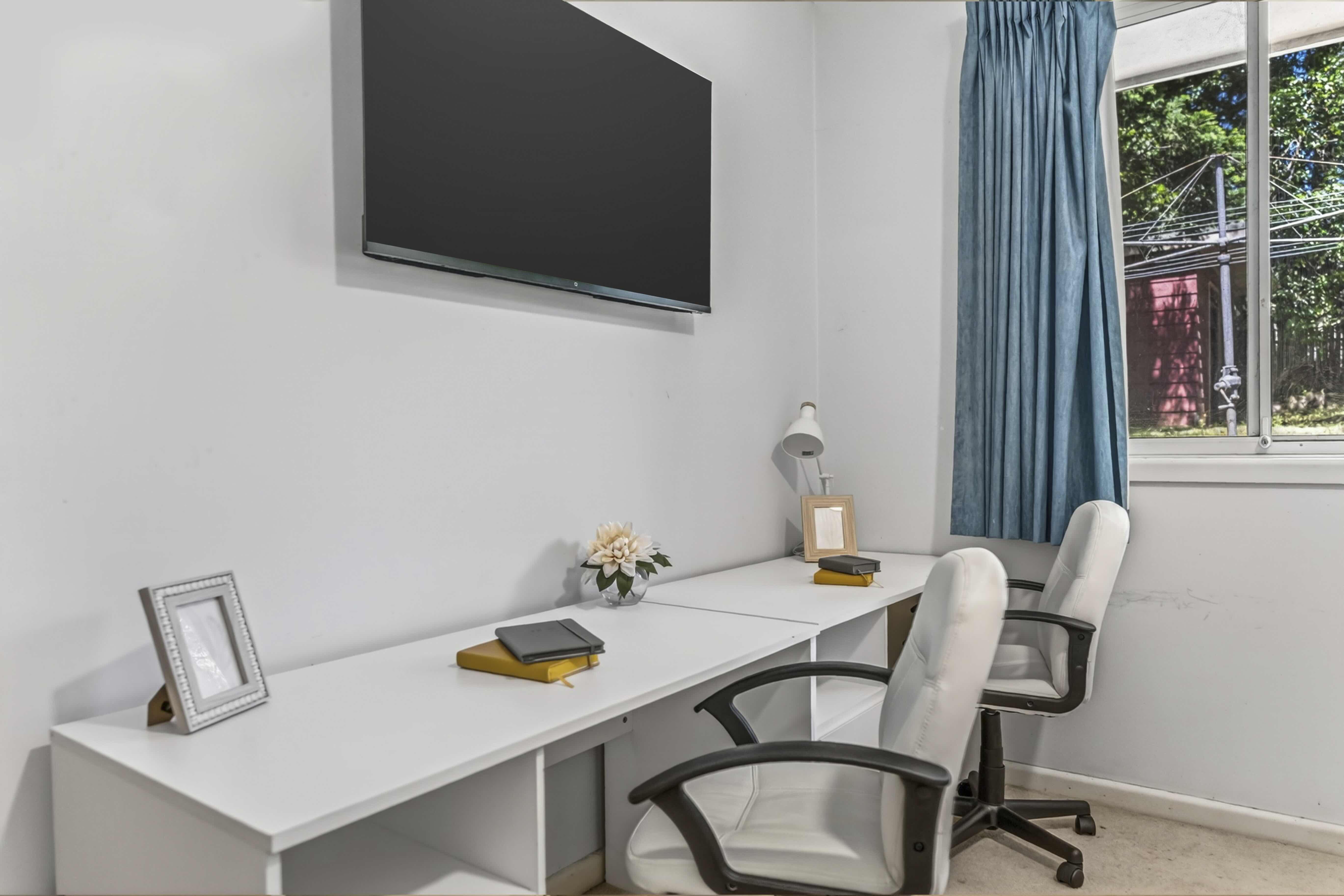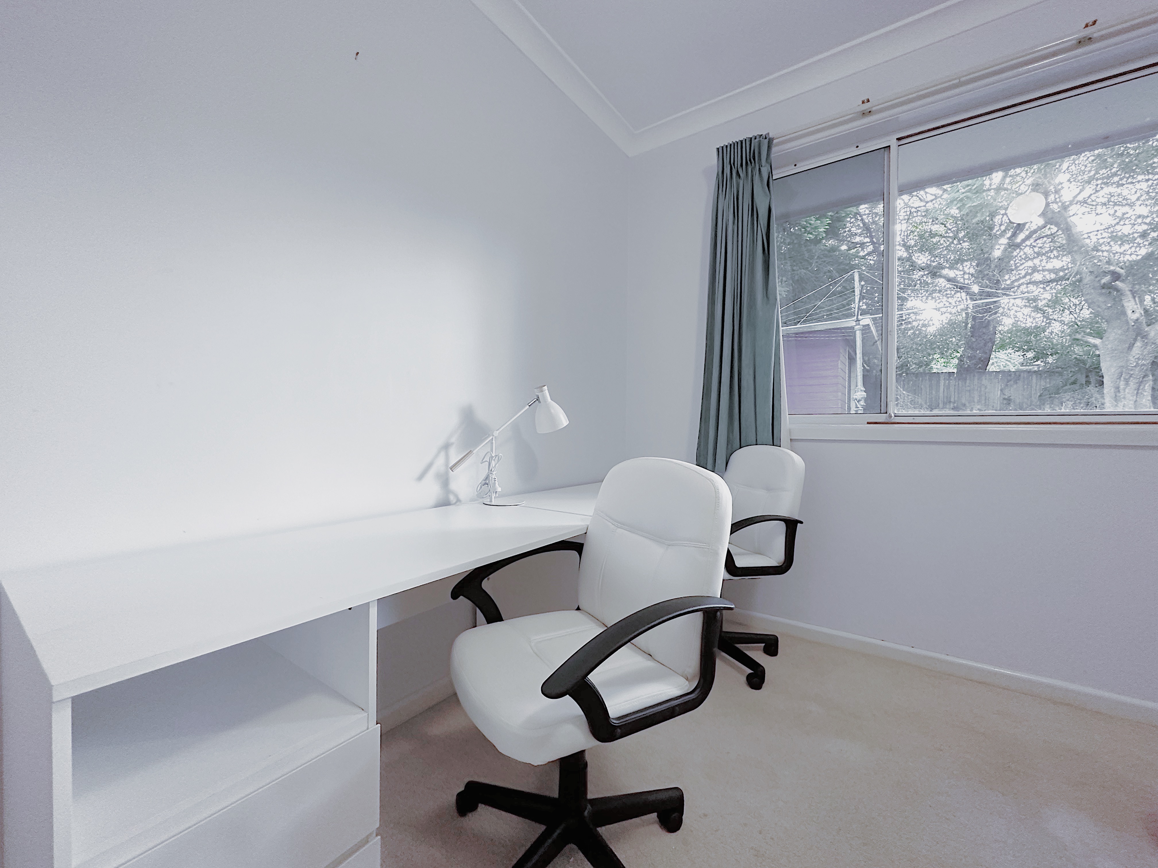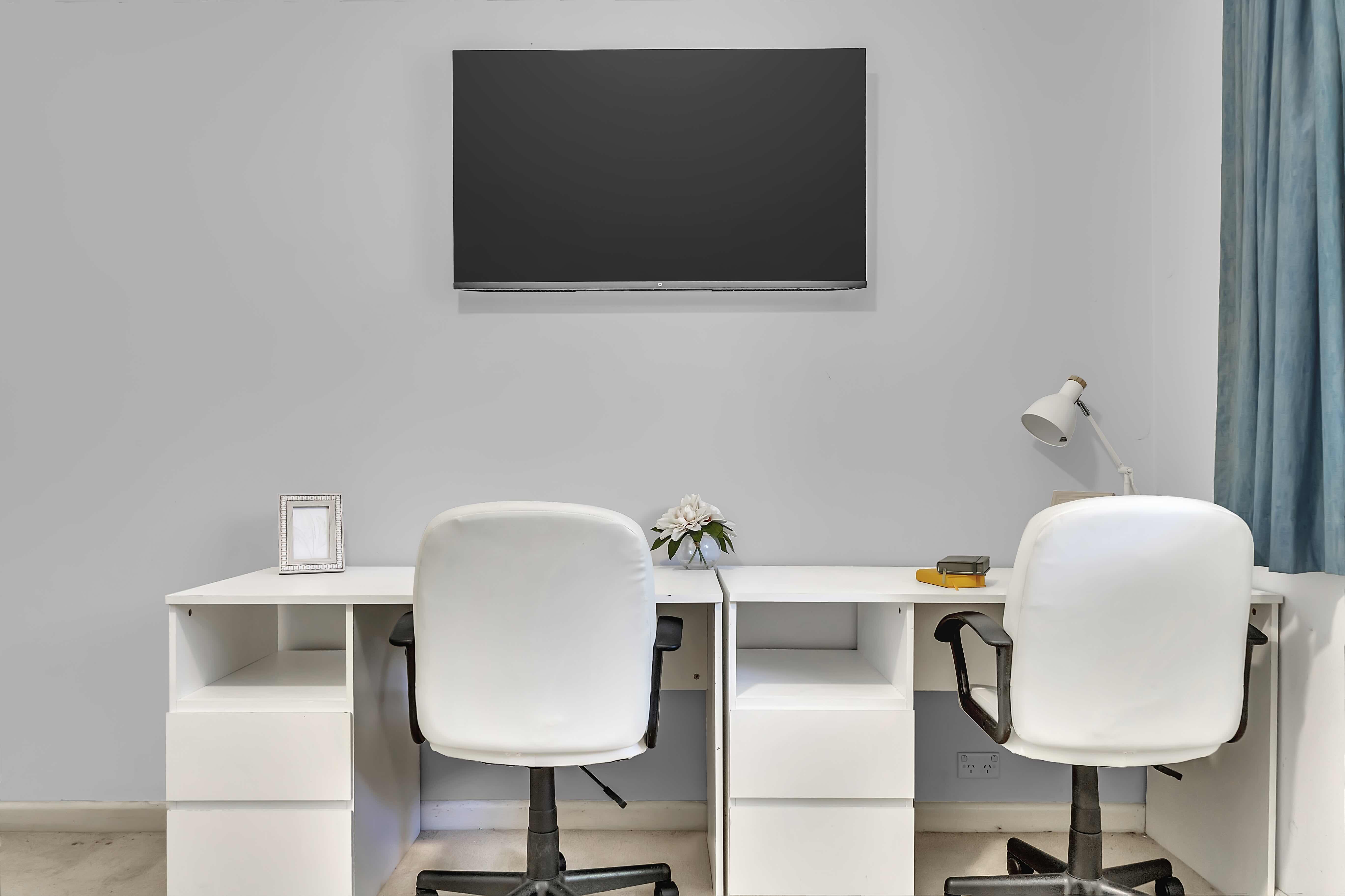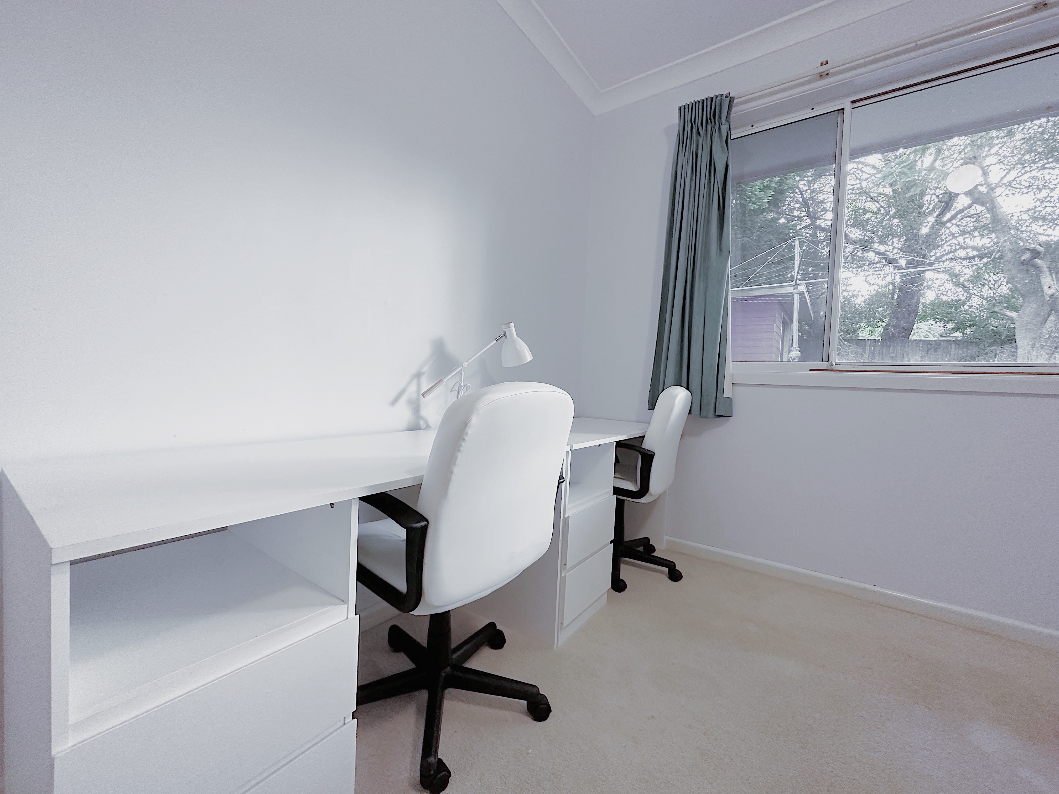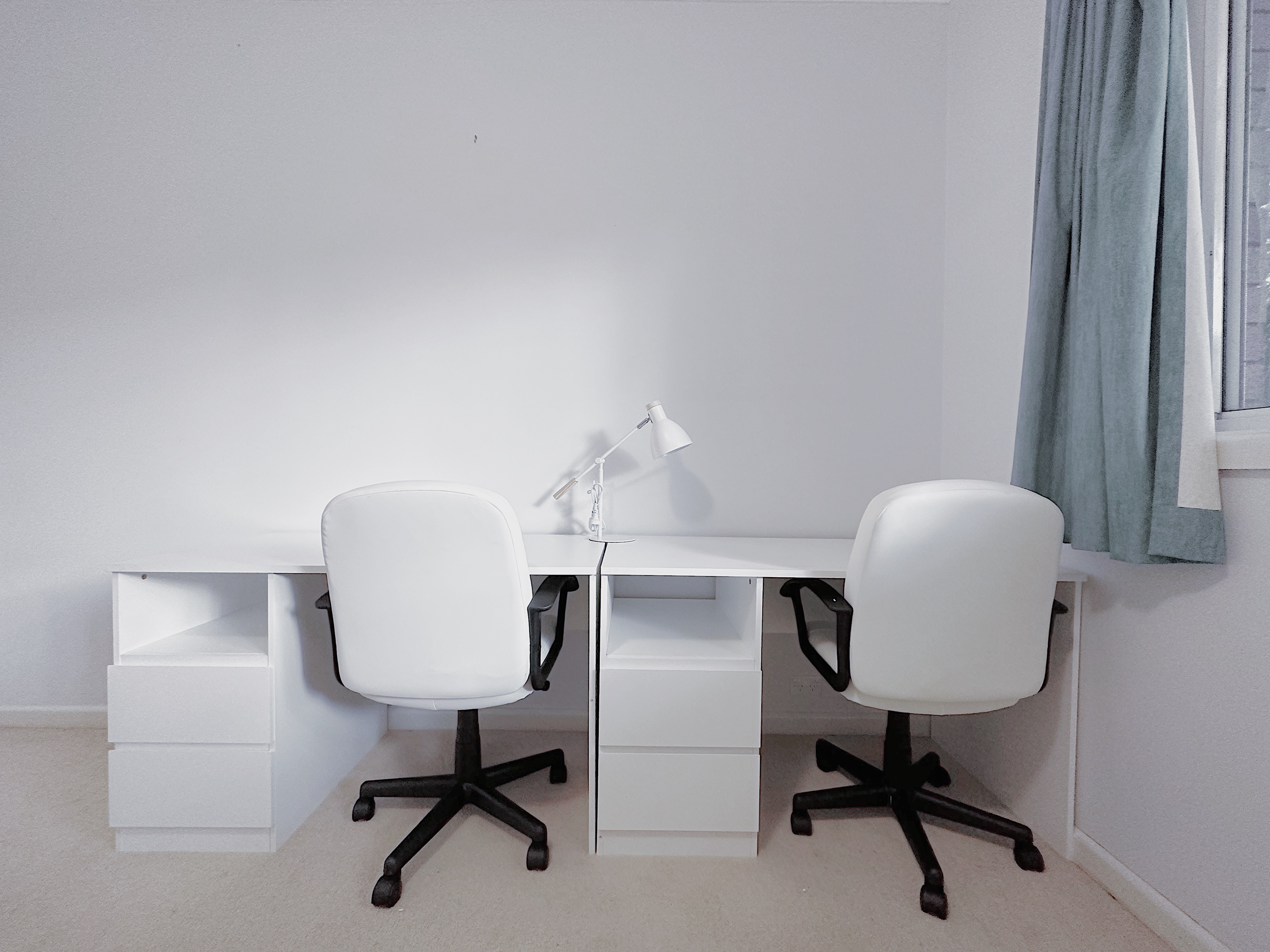 • Two desks with drawers & two swivel chairs, perfect for two individuals to work or study comfortably.